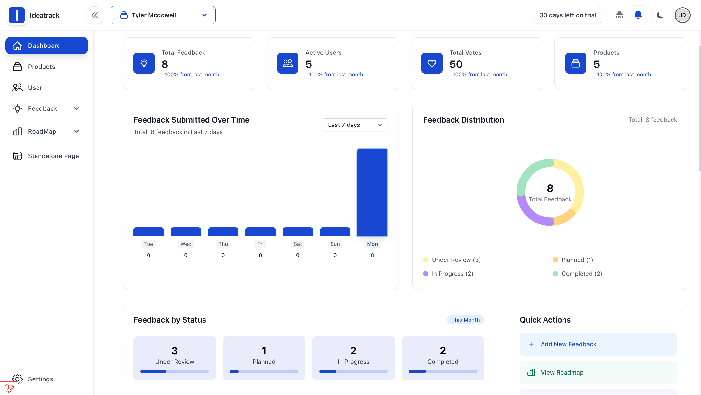 Yes! IdeaTrack can automatically notify users via email or in-app alerts when their feedback is updated — keeping them in the loop and boosting engagement.